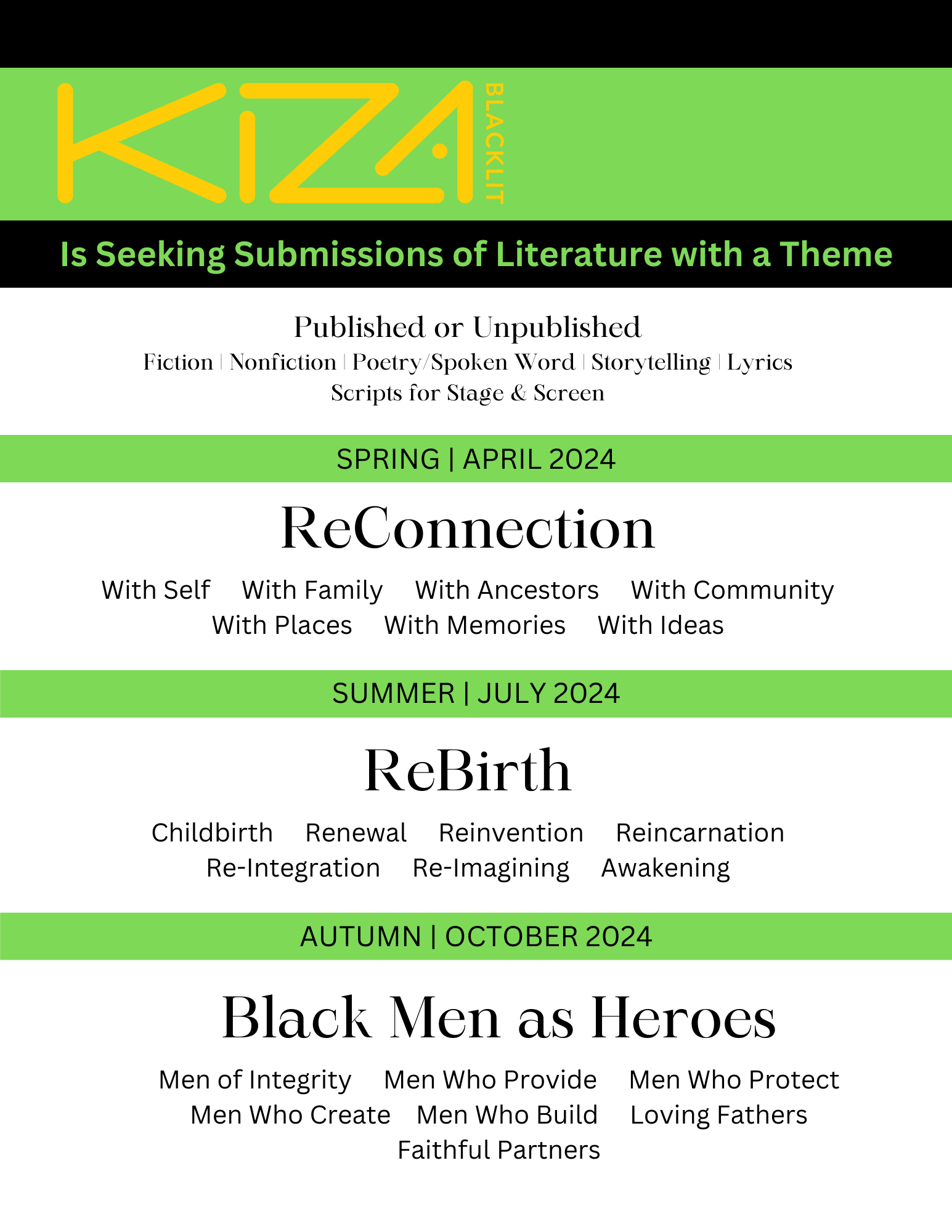 Submit Your Themed Lit ADVERTISEMENT Dec 31 Written By NJEMILE ALI Submissions are accepted on a continuous basis from writers who identify as Black. Submit published or unpublished works of fiction, nonfiction, poetry & spoken word, storytelling, lyrics and scripts for stage & screen. Click to Submit NJEMILE ALI
