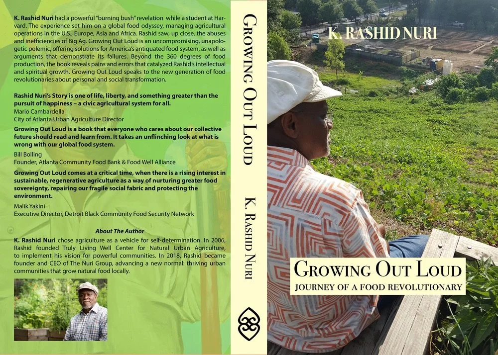 In this excerpt from Growing Out Loud: Journey of a Food Revolutionary, K. Rashid Nuri speaks frankly about the rigors of building Truly Living Well Center for Urban Agriculture in Atlanta (TLW). He was sustained by a vision of connecting people with the land, providing healthy food and reversing the trend of Black land loss and food insecurity. Rashid says that he was highly motivated to “build the world that he wanted for his children and grandchildren.