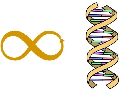It’s infinity again. DNA evokes the sense of an infinite heritage that allows us to draw from the past, live in the present and project toward an equally infinite future.