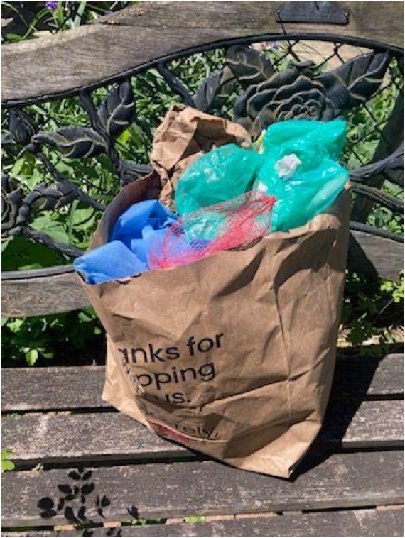 Just one brown paper bag of trash was generated from preparing food for 60 people. Vegetable peelings and scraps that went into the garbage disposal. A few cans went to recycling, and that was it.