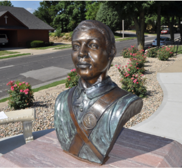 Bust of Cathay Williams. Mural and Statue Safari Stop #12 at the Richard Allen Cultural Center and Museum in Leavenworth, Kansas.